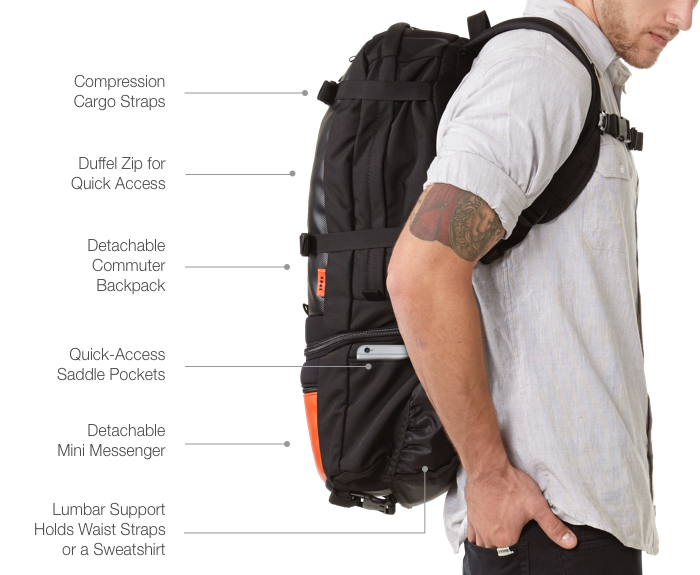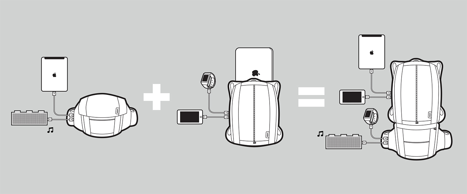 John set out to design the perfect modular solution for boarding a plane and keeping a smaller portion of the bag at your seat during long international hauls. With the SOOT Electropack, users can stow the Commuter portion above their seat, and zip off the Mini Messenger to keep with them during flights.